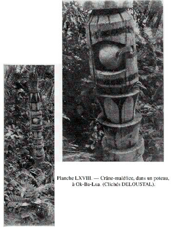 | Những sọ người trong cột hiến tế mà LePichon chụp được trong những năm 30 của thế kỷ 20 khiến nhiều người đặt ra vấn đề, sau khi săn máu, những chiến binh Cơ Tu còn chặt đầu nạn nhân? |