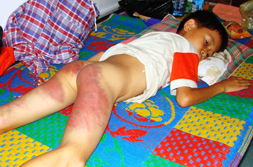 Ông Lê Hữu Diễn, Phó giám đốc bệnh viện cho biết, bệnh viện này đã làm một số xét nghiệm và siêu âm đối với cháu Phát. Theo ông Diễn, Phát chỉ bị vết bầm tím ngoài da.