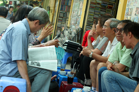 Cụ Hàn Đức Trọng 82 tuổi, đi bộ suốt mấy chục năm qua từ nhà ở Giang Văn Minh đến phố Tạ Hiện để nhâm nhi cà phê, gặp bạn trò chuyện
