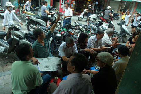 Góc cà phê này xưa kia là cà phê Nhân ở gần Cầu Gỗ. Vẫn những thực khách ấy giờ tóc đã chuyển màu
