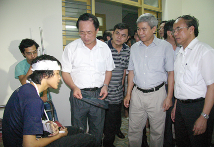 | Lãnh đạo thành phố Hải Phòng thăm các nạn nhân bị thương tại bênh viện Thủy Nguyên |