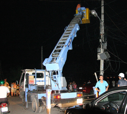 | Công nhân điện lực Thủy Nguyên khẩn trương khắc phục hậu quả do cơn lốc gây ra |