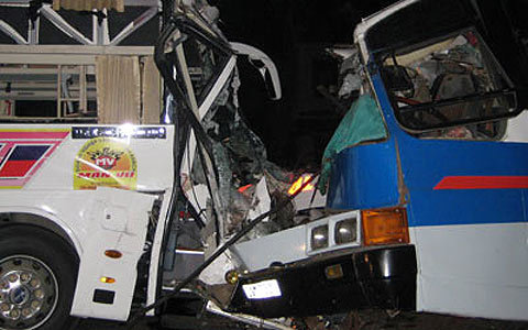 Hình ảnh vụ tai nạn xe khách chạy tuyến Hà Tĩnh - Hà Nội đấu đấu xảy ra tại huyện Thạch Hà vào năm 2009 khiến 7 người chết và bị thương.(Ảnh: VNN) |