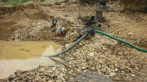 Trước khi đến Phước Sơn (Quảng Nam), chúng tôi vẫn chưa hình dung hết được cảnh khai thác vàng. Lên đến nơi, bất chấp cái mỏi mệt, cái nắng gay gắt của khí trời miền trung, chúng tôi đón xe ôm đi xem làm vàng. Bác xe ôm bảo bây giờ công ty làm vàng có phép hết rồi, rất khó vào trong, làm vàng trái phép thì hiện nay lực lượng công an đang truy quét nên đã thưa dần.