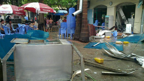 Cánh cửa kéo bằng kim loại của quán bia bị sức ép của tiếng nổ hất tung bay một quãng vài chục mét; mái che kim loại bị uốn cong méo mó; nhiều bàn ghế kim loại trong nhà bị đẩy văng ra ngoài sân…