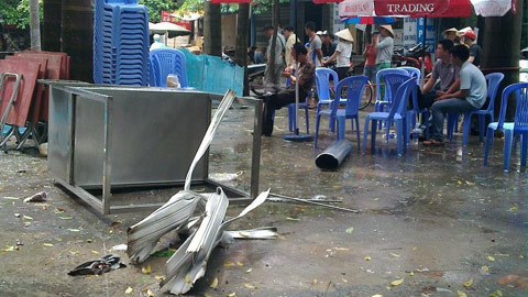 Bàng hoàng, chị chạy ra bên ngoài đường kiểm tra thì thấy toàn bộ đồ đạc, cửa tôn, bàn kim loại… của quán bia Hải Xồm tan hoang.