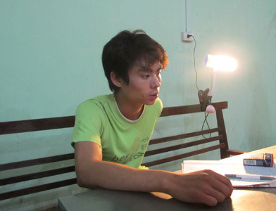 Tại thời điểm bị bắt, Luyện ăn mặc khá chỉnh tề với áo phông màu xanh nõn chuối, mặc quần bò màu xanh.