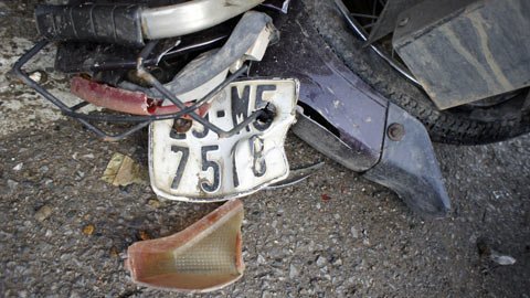 Tại hiện trường, chiếc xe máy mang BKS 29M5-7518 nát bét. Chiếc xe tải chở hành đông lạnh mang BKS 88K – 2986.