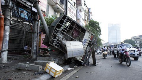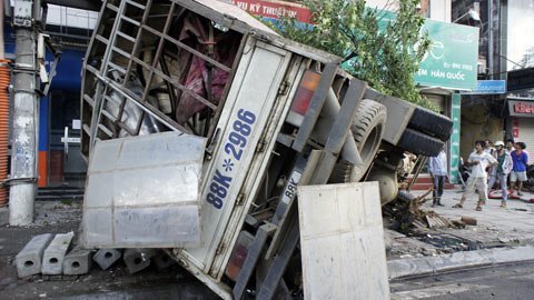 Một số người dân chứng kiến cho biết, do chiếc xe tải chạy với vận tốc lớn nên không thể tránh chiếc xe máy, sau cú phanh cháy đường, chiếc xe máy đã nằm gọn dưới bánh sau của xe tải. Rất may, người điều kiển chiếc xe máy đã nhảy ra ngoài, chỉ bị xây xát nhẹ.