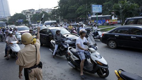 | Cảnh sát giao thông đã có mặt phân làn tránh ùn tắc. |