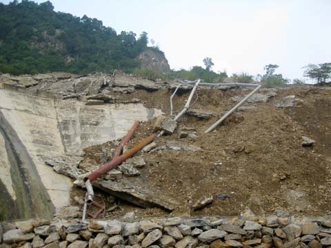 Phía trên đỉnh điểm sạt lở, một bể nước cứu hoả nằm trên đường vận hành N1 ở độ cao 147 đã bị dịch chuyển đi gần 20m và các đoạn ống dẫn nước cứu hoả bị xô đẩy, phả hỏng.