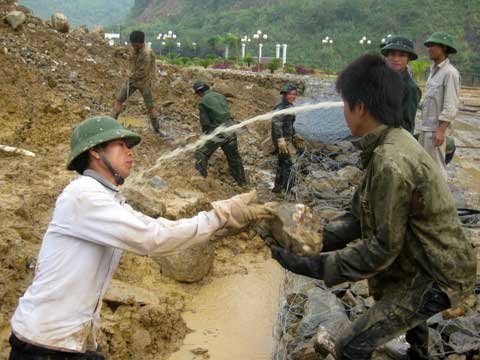 VietNamNet ghi lại những hình ảnh khắc phục sự cố sạt lở núi có nguy cơ vùi lấp Nhà máy thuỷ điện Bản Vẽ.
