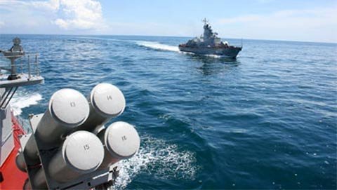 Biên đội tàu thuộc Lữ đoàn 162 (Vùng 4 Hải quân) huấn luyện và tuần tra bảo vệ chủ quyền biển, đảo (Ảnh: QĐND) |
