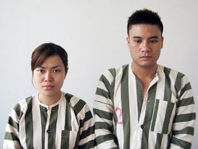 | Vợ chồng “siêu lừa” tại cơ quan điều tra. |