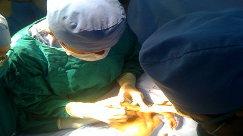 Theo các bác sĩ tham gia kíp mổ, qua hội chẩn rất may hai tay thừa của cháu nằm bên ngoài không xâm lấn đến nội tạng nên rất thuận lợi trong lúc tiến hành phẫu thuật.