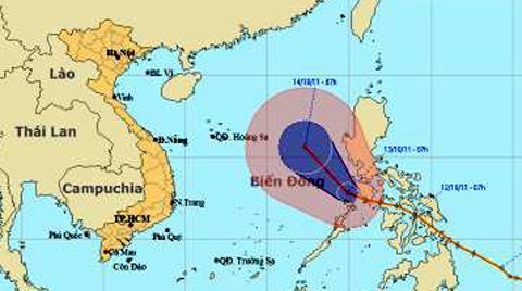 Đến 7 giờ ngày 14/10, vị trí tâm bão ở vào khoảng 15,6 độ Vĩ Bắc; 117,3 độ Kinh Đông, trên vùng biển phía Đông biển Đông, cách quần đảo Hoàng Sa khoảng 580km về phía Đông Đông Nam. Sức gió mạnh nhất ở vùng gần tâm bão mạnh cấp 8 (tức là từ 62 đến 74 km một giờ), giật cấp 9, cấp 10.
