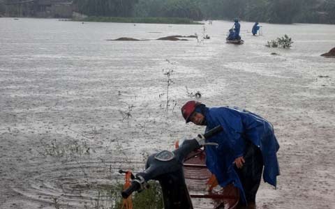 | Mưa lớn, nước trên thượng nguồn đổ về đã gây ngập lụt tại các huyện Lệ Thuỷ, Minh Hoá, Quảng Ninh. Nhiều tuyến giao thông bị chia cắt, hàng ngàn hộ dân bị cô lập. |