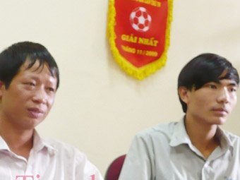 | Tài xế xe buýt 34 Đỗ Hữu Long (trái) và phụ xe Nguyễn Chí Thanh (phải) . |