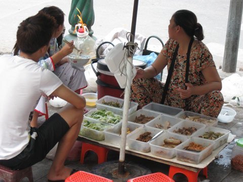 | Ở Hà Nội có rất nhiều những quán ăn vỉa hè như thế này |