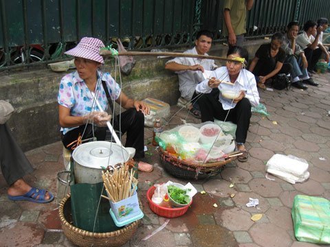 Dọc hè phố, ở các đầu ngõ, không thể đếm xuể những gánh hàng rong rất mất vệ