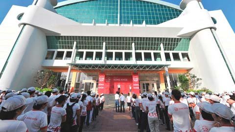 6h30 sáng, hàng trăm nhân viên và đại lý AIA đã có mặt tại Nhà Tập luyện Thể
