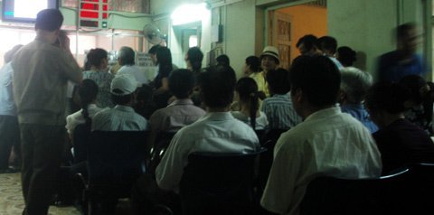 Còn tại bệnh viện K, hệ thống loa phát thanh của bệnh viện họat động hết công suất vào giờ cao điểm.