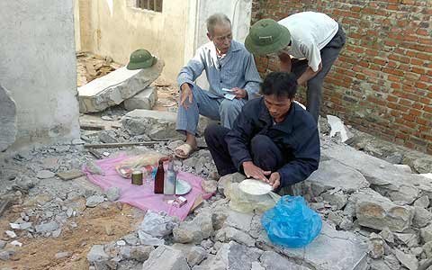Theo thông tin ban đầu, từ sáng sớm, biết nhà anh Ký phá dỡ nhà cũ để xây nhà mới, 5 người đàn ông trong xóm đã tới để làm giúp.