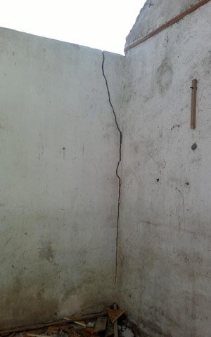 | Một vết nứt tiếp theo trong ngôi nhà đang phá dỡ, có nguy cơ sập tiếp. |