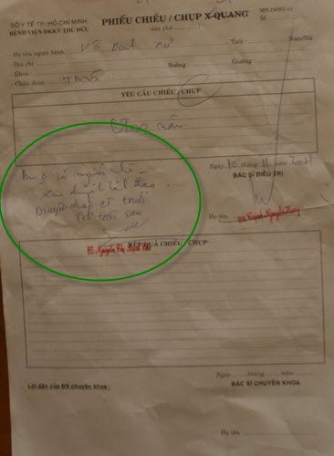 | Điều dưỡng trưởng Nguyễn Thế Đức đã lẳng lặng làm thủ tục đề xuất lãnh đạo cho chụp trước trả sau. Bs Cúc, người trực lãnh đạo đã đã chấp nhận và bút phê ngay vào giấy phiếu chụp CT. |