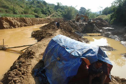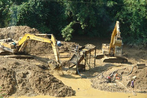 | Chủ phương tiện sử dụng các phương tiện cơ giới hoá hiện đại để đào đãi vàng. |