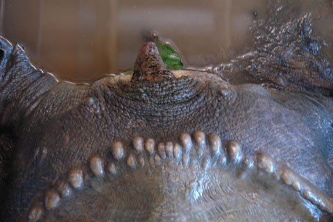 | Những chiếc gai đều đặn trên phần mai trê của con ba ba khổng lồ. - Ảnh: Kiên Trung |