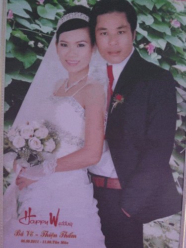 | Tấm ảnh cưới vợ chồng chị Thẩm vẫn còn mới tinh treo trong nhà. |