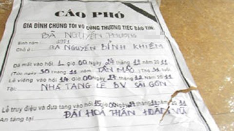 Trước đó vào tối 23/12, lực lượng Công an phường Nguyễn Du nhận được tin báo có vụ gây rối trật tự công cộng trước một ngôi nhà trên phố Nguyễn Bỉnh Khiêm. Khi lực lược công an phường cùng cảnh sát 113 có mặt thì thấy trước cửa ngôi nhà này đã dựng rạp chiếm nửa lòng đường. Trước cửa rạp cáo dán cáo phó, đề tên người chết là chị Nguyễn Phương T., sinh năm 1981, “tạ thế” lúc 1h ngày 24/12; lễ viếng tại bệnh viện Sài Gòn và an táng tại… đài hóa thân Hoàn Vũ.
