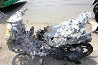 | Xe của Yamaha bốc cháy ngày 25/12 (Ảnh: Tiền phong) |