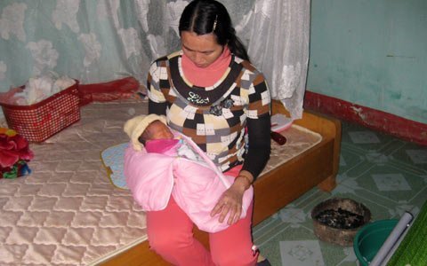 ![]() Mất mẹ, bé phải đi bú nhờ chị hàng xóm. Trong phòng vẫn đang còn nồi than đỏ lửa, một thói quen của người dân khi mùa đông giá rét. |