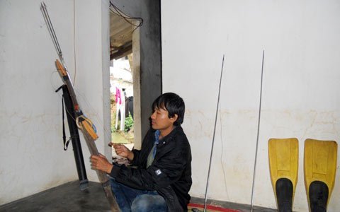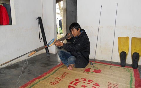 theo anh Vượng lặn bắn cá nhưng chẳng bắn được.