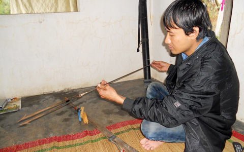 Ngắm khẩu súng gỗ tự chế, vuốt ve những mũi tên bằng sắt dài hơn 1m, sắc