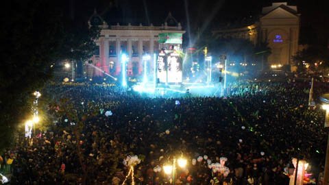 Quảng trường Cách mạng Tháng Tám thu hút nhiều bạn trẻ với sân kháu ca nhạc đón chào năm mới