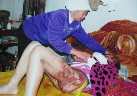 - Người phụ nữ teo tóp nằm gần như bất động trên giường. Những vết bỏng lớn loang rộng, trầy da đỏ hỏn gặp lạnh càng thêm tê tái. 4 tháng qua như một cơn ác mộng trong cuộc đời người phụ nữ đã xấp xỉ tuổi lục tuần.