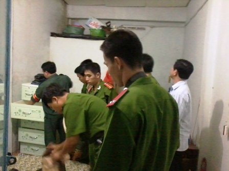 | Cơ quan công an khám xét phòng trọ của Tâm tại ấp 1, xã Bình Hưng, huyện Bình Chánh |