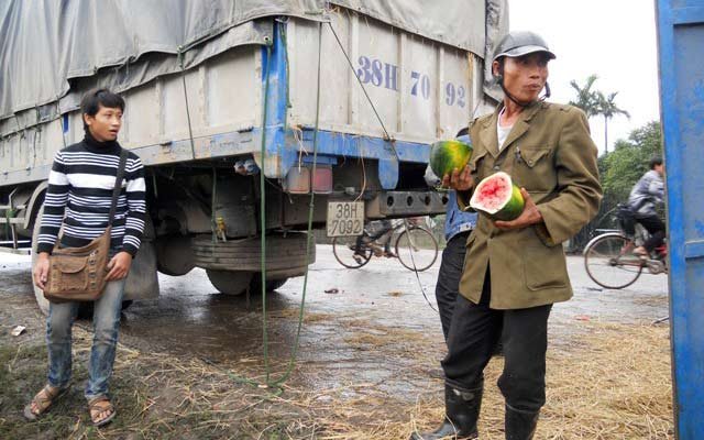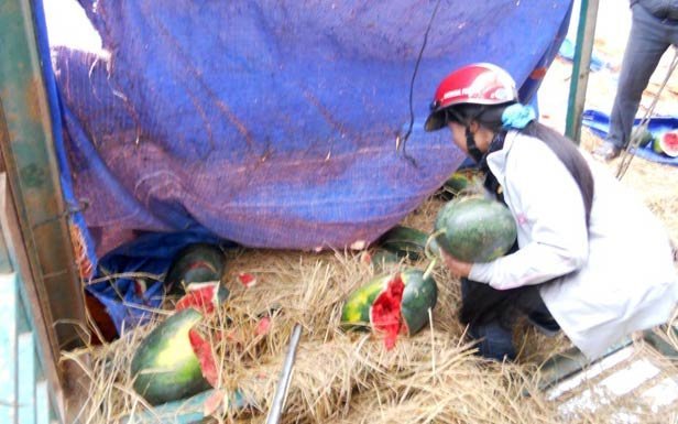 Sau tai nạn, người dân đã đổ xô đến nhặt dưa rơi vãi. Tài xế xe tải phải thuê người bốc số dưa từ xe mình bán cho một xe khác. Riêng tiền thuê bốc hàng hết 3,8 triệu.