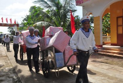thuộc Hải quân vùng 4 cũng mang hàng Tết đến các đảo nổi, đảo chìm ở quần đảo