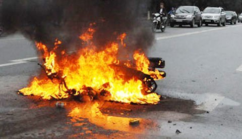 Chiều mồng 1 Tết, ngày 23/1, xảy ra vụ tai nạn giao thông, khiến chiếc xe máy trượt dài trên đường Hà Huy Tập, (TP. Vinh, Nghệ An) và bốc cháy nghi ngút.