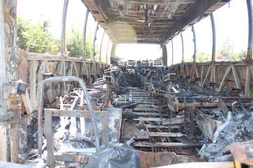 | Chiếc xe khách bị cháy rụi (Ảnh: Tuổi trẻ) |