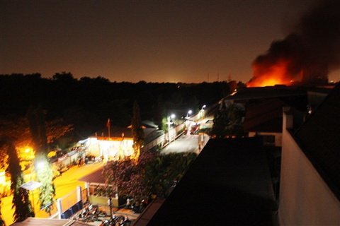 | Lửa từ công ty P&G bốc lên trong đêm (Ảnh Tiền Phong) |