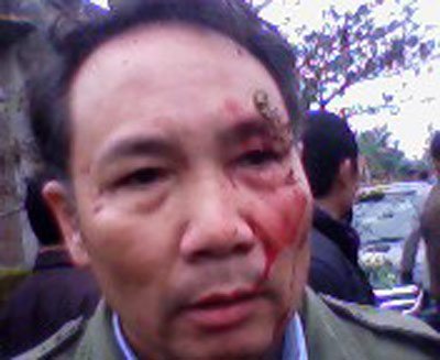 Ông Trương Văn Phước bị ném đá chảy máu ở khoé mắt và cánh tay. Ảnh do người dân chụp cung cấp