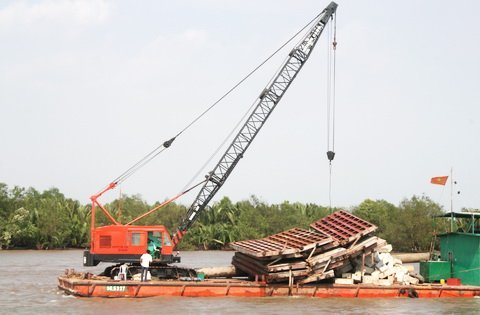 Phải mất trọn buổi sáng, một cần cẩu loại 100 tấn đặt trên sà lan tiếp cận con tàu bị nạn mới bóc dở được nắp hầm nơi chứa 3.070 tấn clinker. Đến 12g, một cần cẩu loại 120 tấn và một loại 45 tấn múc những gàu clinker đầu tiên dưới tàu bị nạn, đổ vào hai chiếc sa lan túc trực sẵn.