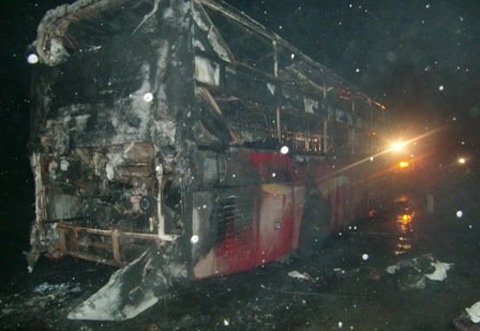 Chiếc xe khách bị thiêu rụi tại xã Thanh Trạch, huyện Bố Trạch, Quảng Bình (Ảnh: VietNamNet)