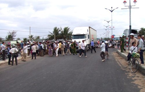 Người dân tập trung quá đông đã làm tắt nghẽn nhiều đọan đường qua nơi xảy ra tai nạn, lực lượng công an phải huy động gác chặn và hướng dẫn xe lưu thông.
