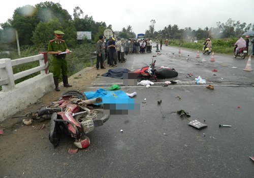 Vụ tai nạn làm vợ chồng anh Phan Thanh Hùng và Phan Thị Mến ở thôn Bình Thanh Đông, huyện Bình Sơn chết tại chỗ. Có 3 người khác trong đó có trẻ em bị thương nặng phải chuyển đi cấp cứu.